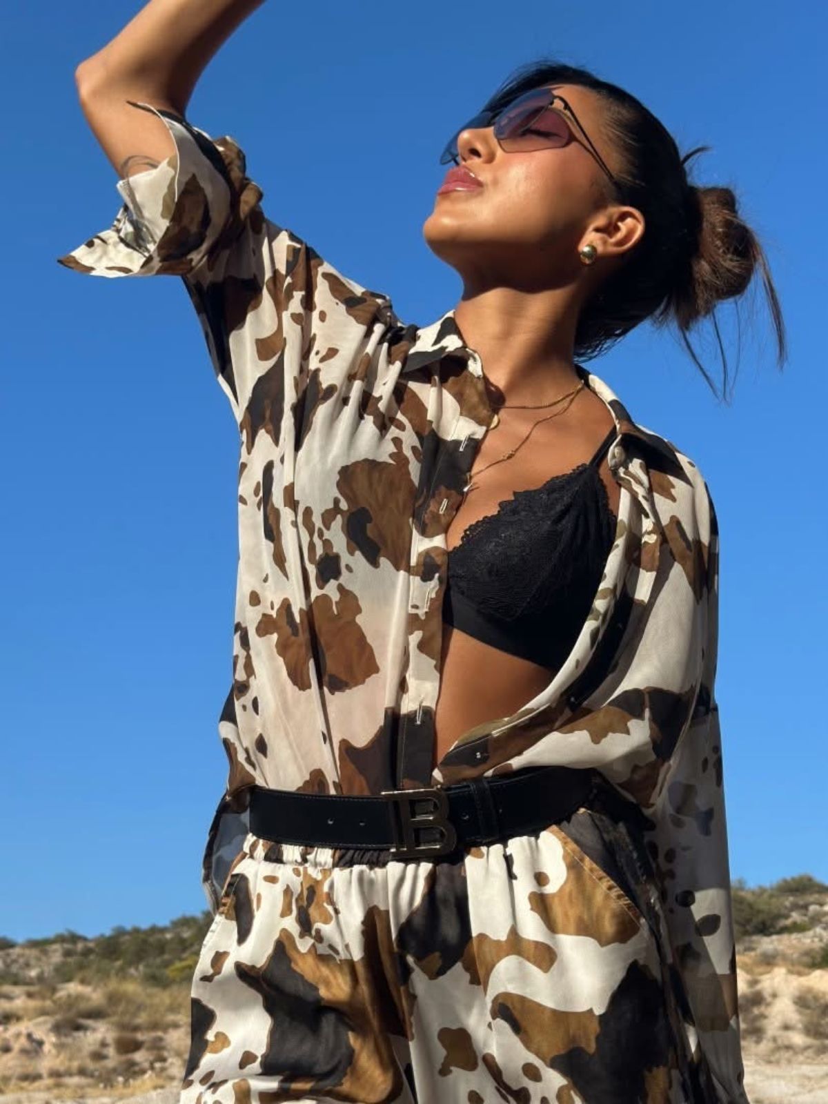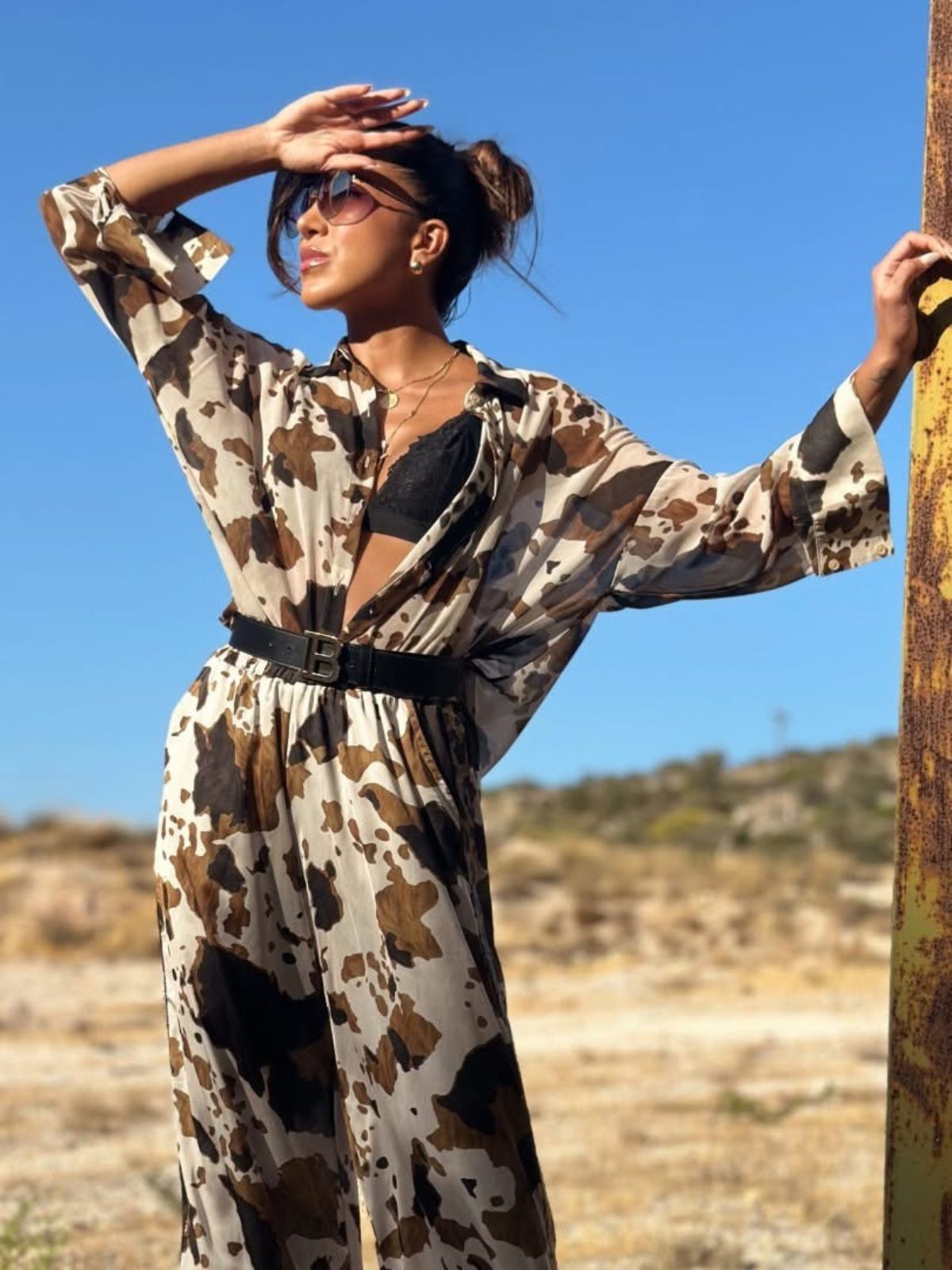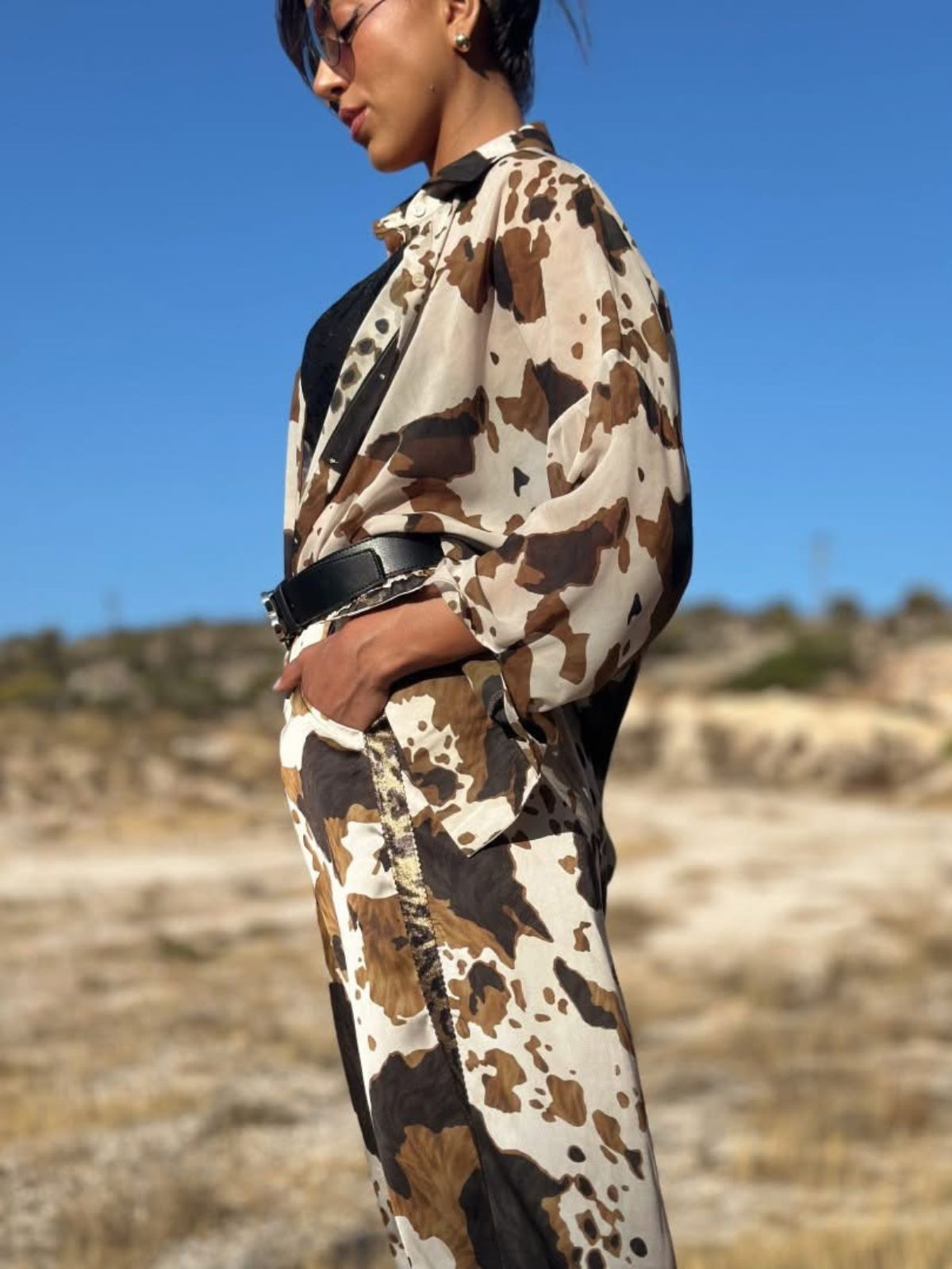•Ανάλαφρο και κομψό oversized πουκάμισο από δροσερή ζορζέτα είναι η ιδανική επιλογή για όλες τις ώρες. Με oversized γραμμή και εντυπωσιακό print σε φυσικές αποχρώσεις, προσφέρει αέρινη κίνηση και στυλ χωρίς προσπάθεια. Φόρεσέ το με το ασορτί παντελόνι για total look ή με τζιν για πιο casual chic διάθεση.