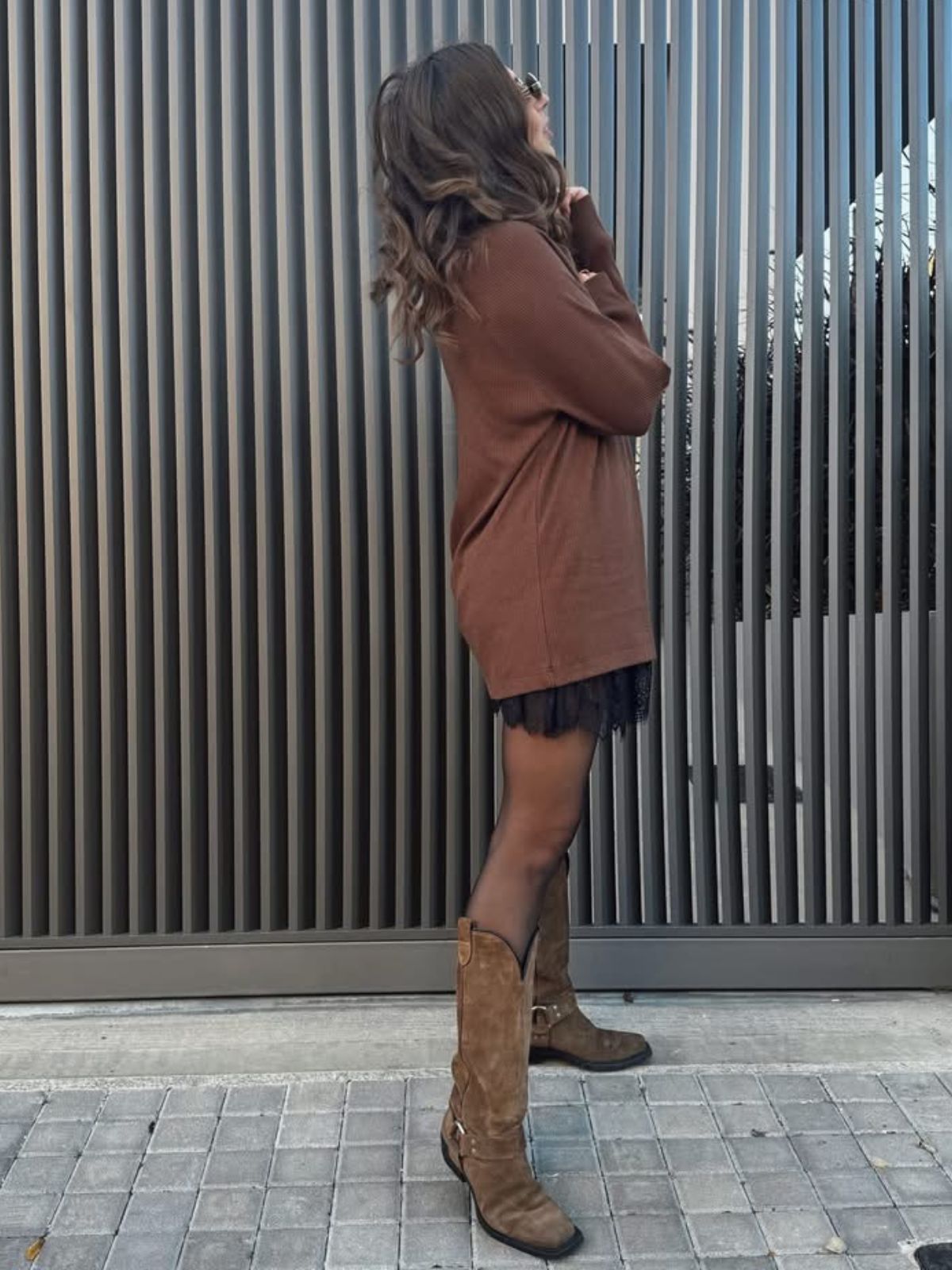 Μπλουζοφόρεμα rib με φουστάκι με δαντέλα
